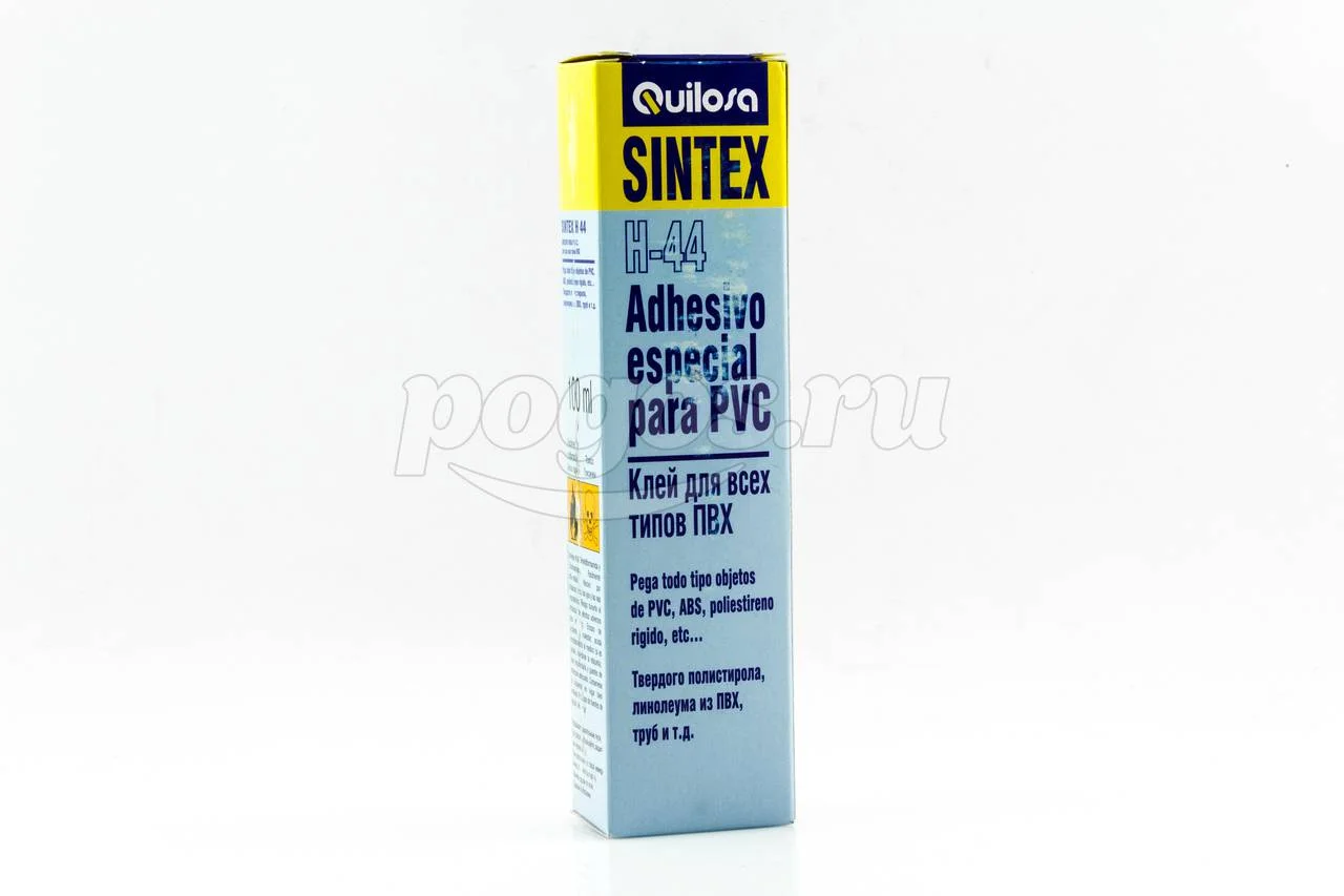 Клей Синтекс H44 предназначен для сплавления швов изделий из твердого ПВХ (канализационные трубы, водопроводные трубы для холодной и горячей воды, воздуховодов, профилей дверных и оконных рам), швов покрытий пола из ПВХ, плинтусов из ПВХ с покрытием и стен из ПВХ, имеющих щели от 0,5 мм до 4 мм, для упрочнения швов текстильных покрытий на основе ПВХ (типа «ковролан») - против обтрепывания, ABS-пластика и других твердых пластиков. Для склеивания швов линолеума из ПВХ на вспененной основе.