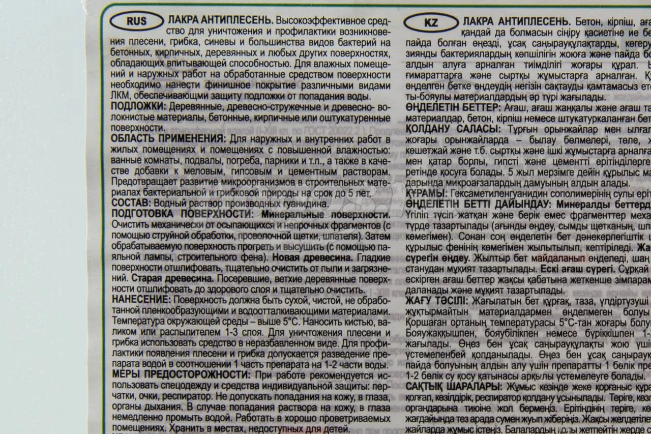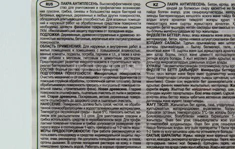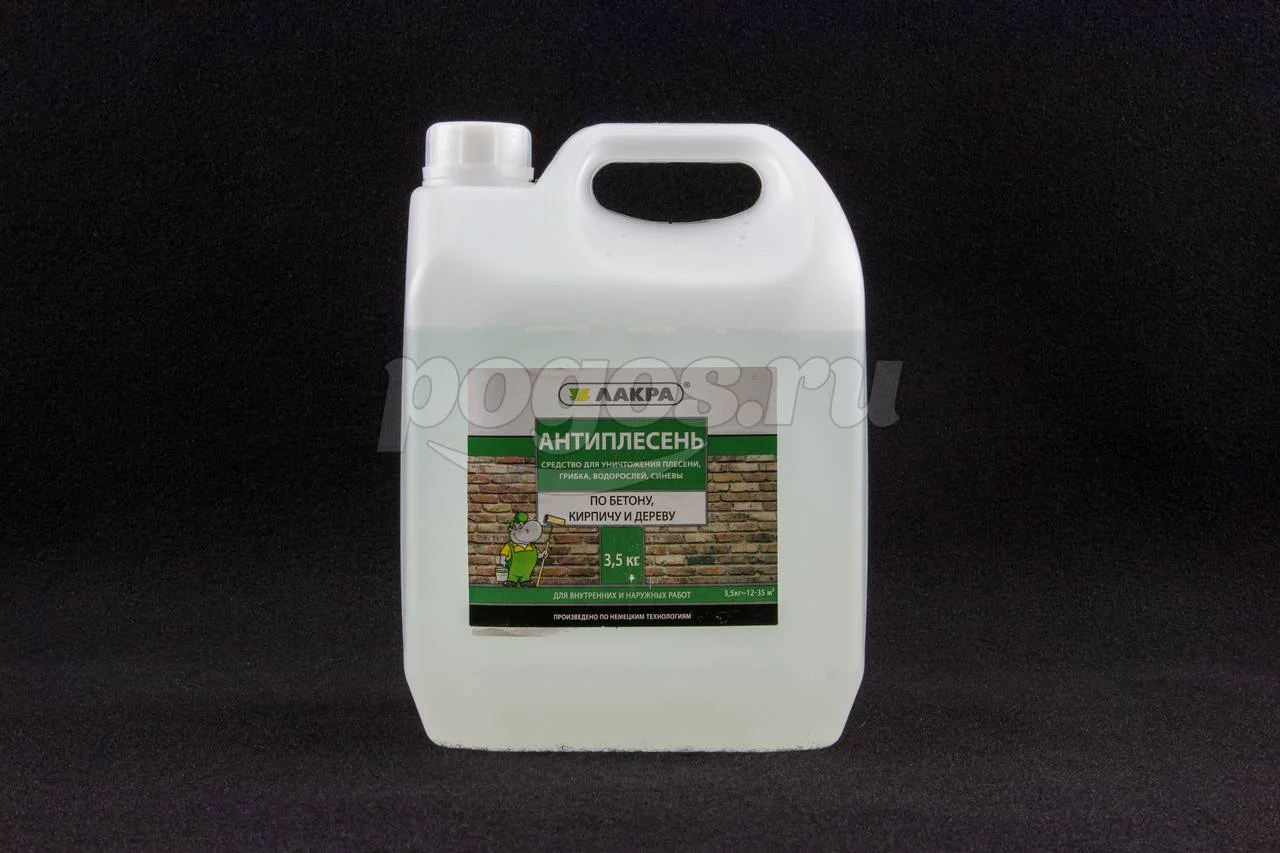 Высокоэффективное средство для уничтожения и профилактики возникновения плесени, грибка, синевы и большинства видов бактерий на бетонных, кирпичных, деревянных и любых других поверхностях, обладающих впитывающей способностью.