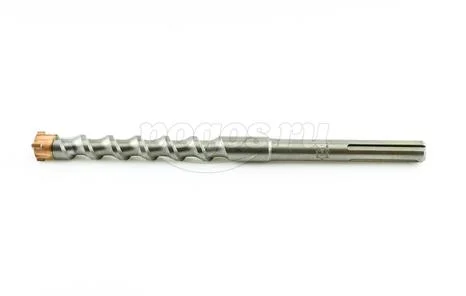 Наконечник с четырьмя резцами сделан из твёрдого вольфрамокобальтого сплава ВК8С, поэтому бур имеет большой рабочий ресурс и способен высверлить отверстие в высокопрочном и армированном бетоне.
