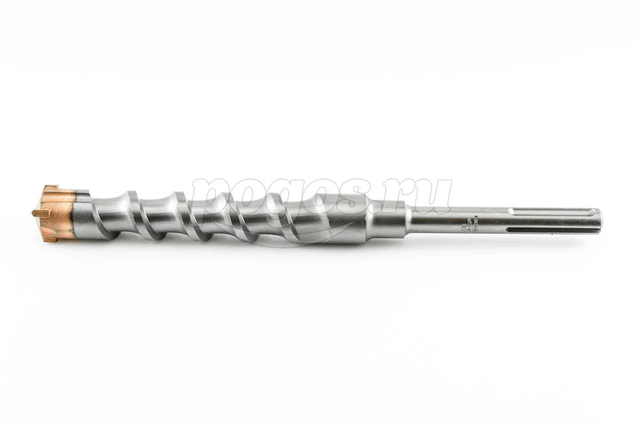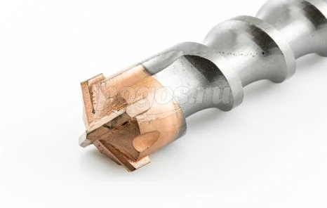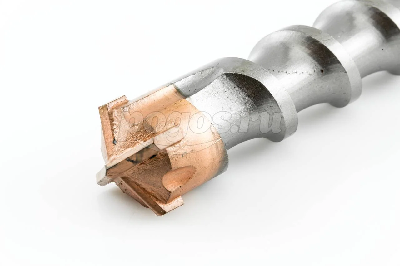 Наконечник с четырьмя резцами сделан из твёрдого вольфрамокобальтого сплава ВК8С, поэтому бур имеет большой рабочий ресурс и способен высверлить отверстие в высокопрочном и армированном бетоне.