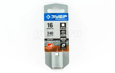 Бур производителя ЗУБР с SDS-Max хвостовиком служит для сверления с ударом в твёрдом бетоне, в любых кирпичных кладках, а также в искусственном и природном камне.