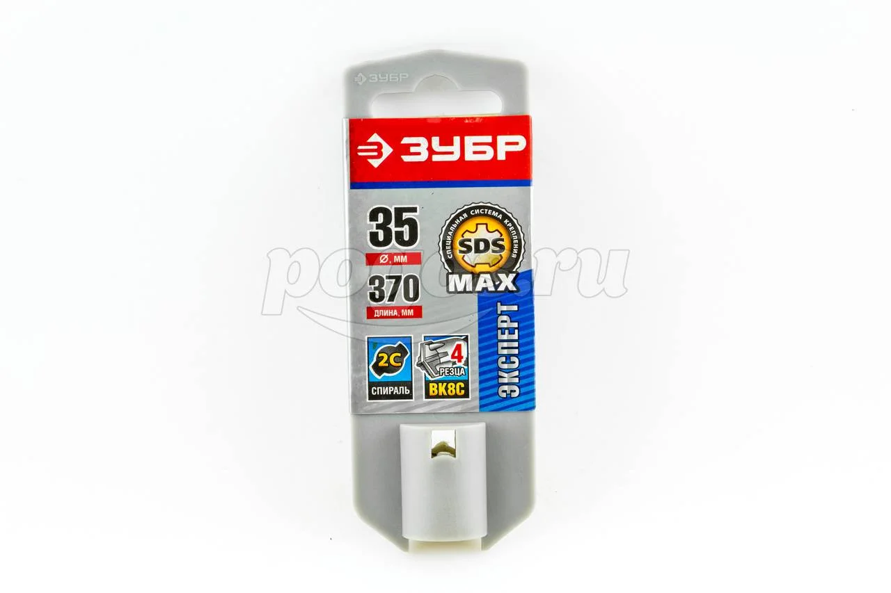 Бур производителя ЗУБР 29350-370-35_z01 с SDS-Max хвостовиком служит для сверления с ударом в твёрдом бетоне, в любых кирпичных кладках, а также в искусственном и природном камне.
