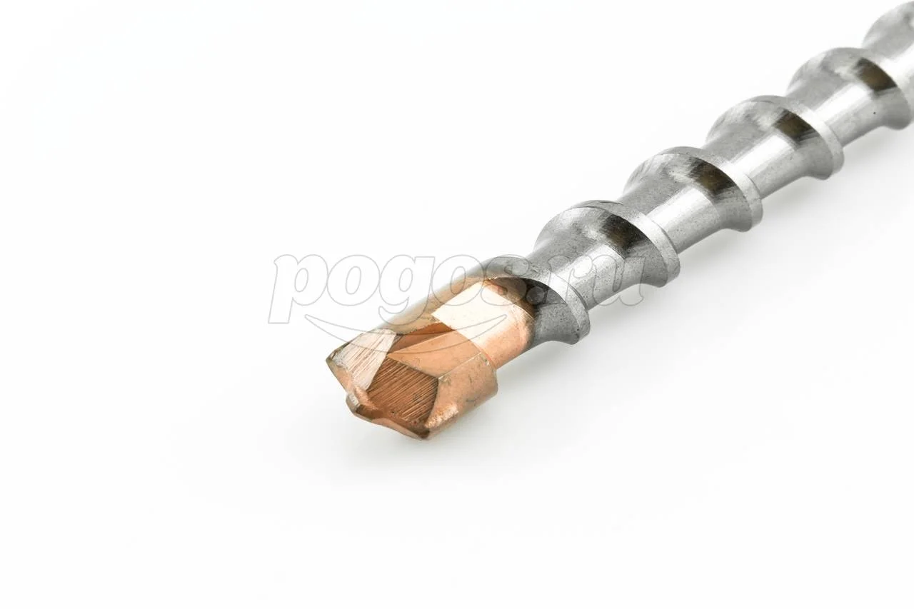 Наконечник с четырьмя резцами сделан из твёрдого вольфрамокобальтого сплава ВК8С, поэтому бур имеет большой рабочий ресурс и способен высверлить отверстие в высокопрочном и армированном бетоне.