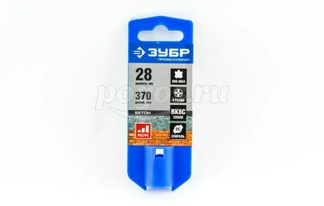 Бур производителя ЗУБР с SDS-Max хвостовиком служит для сверления с ударом в твёрдом бетоне, в любых кирпичных кладках, а также в искусственном и природном камне.