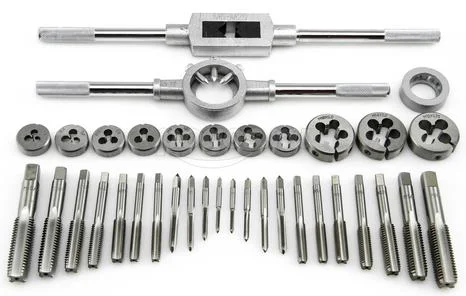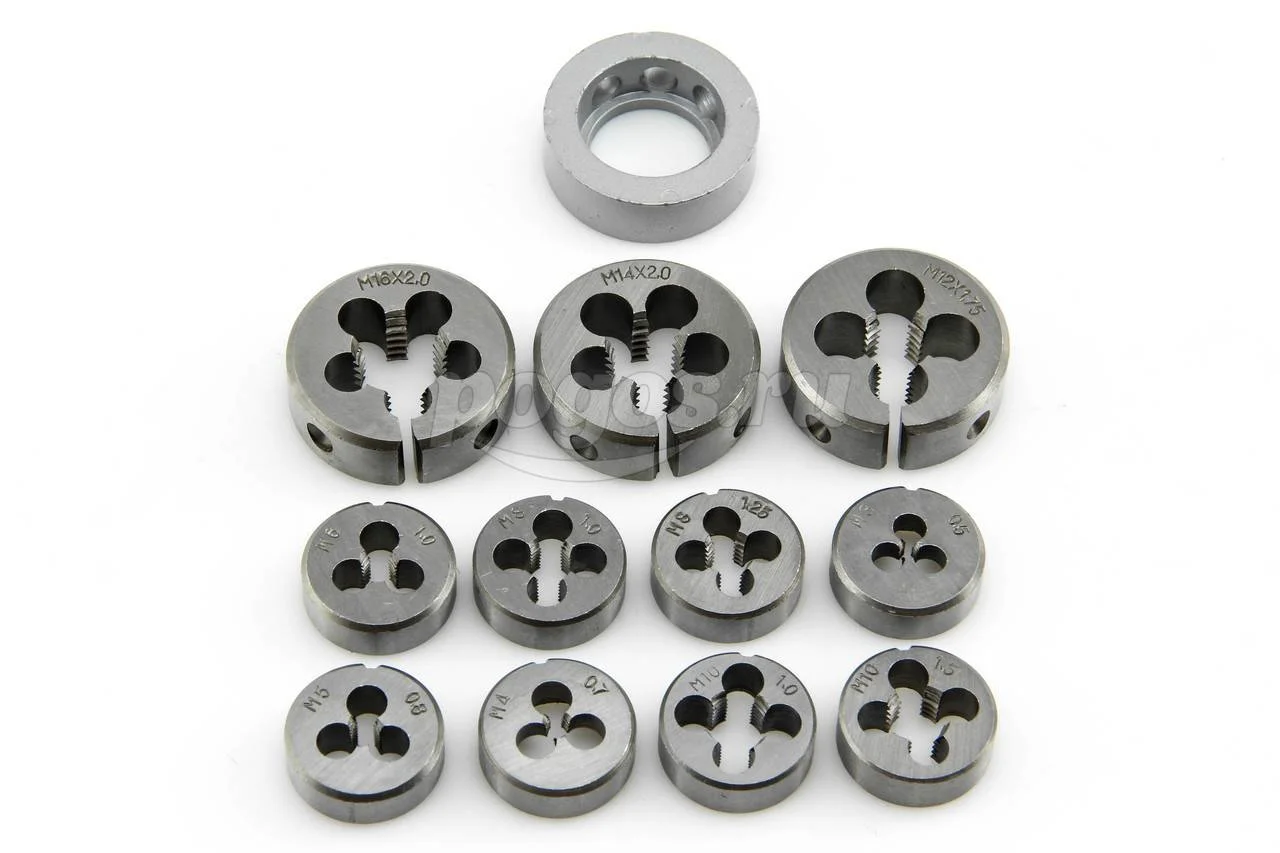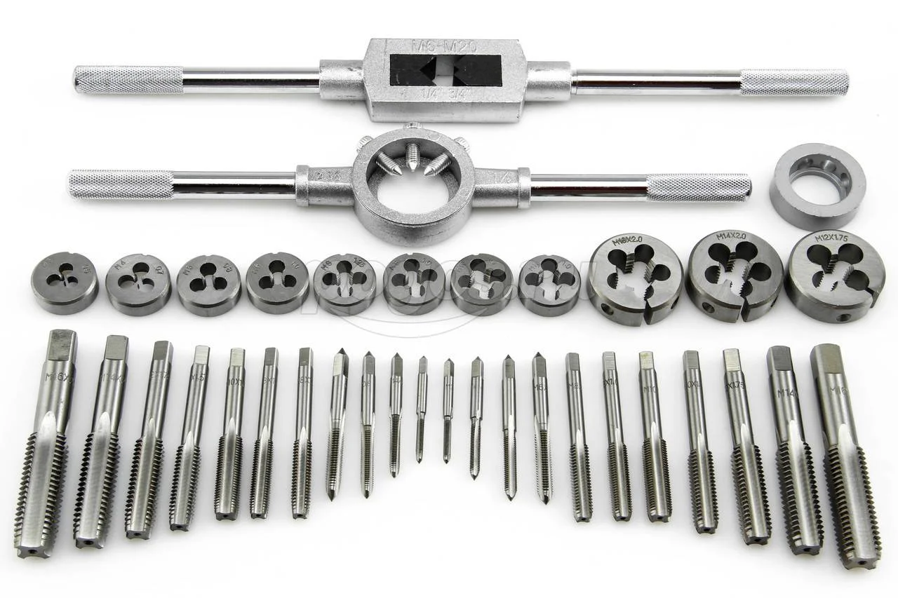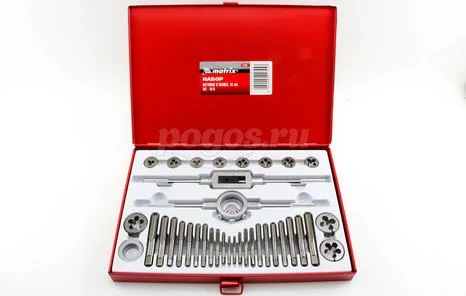 Комплектация: метчики, плашки, метчикодержатель, плашкодержатель.
