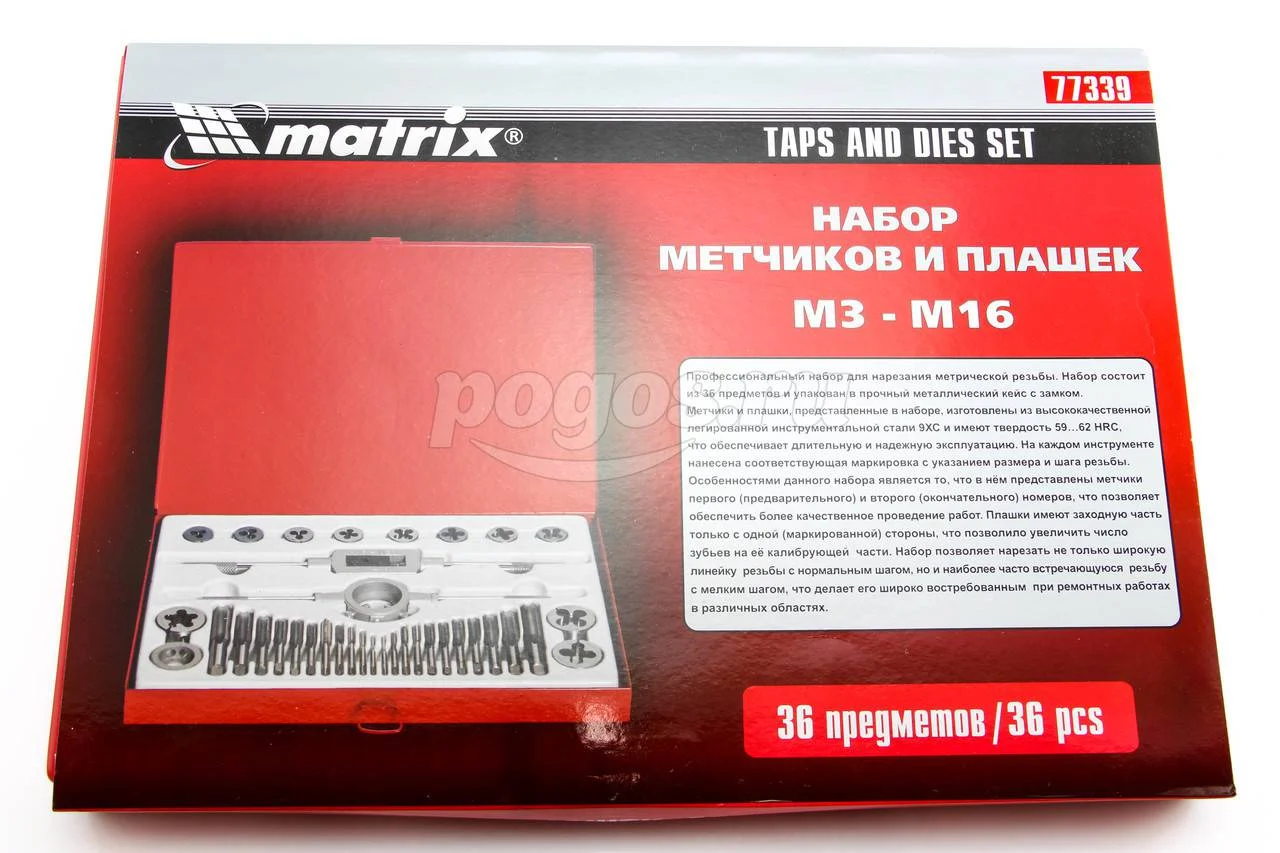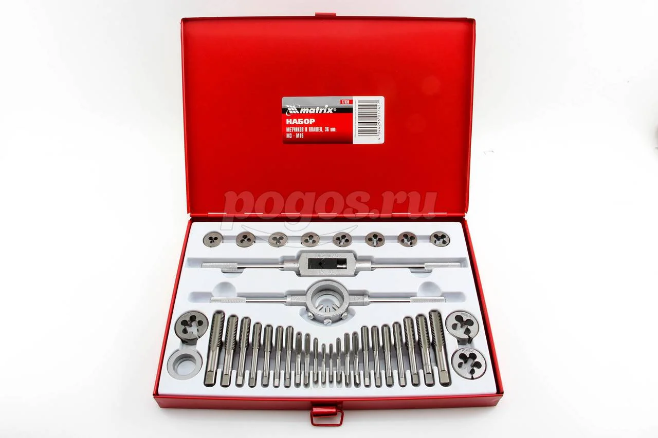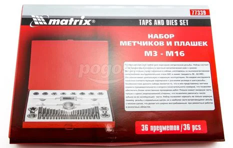 Набор метчиков и плашек MATRIX Master М3-М16 36 предметов, артикул: 77339