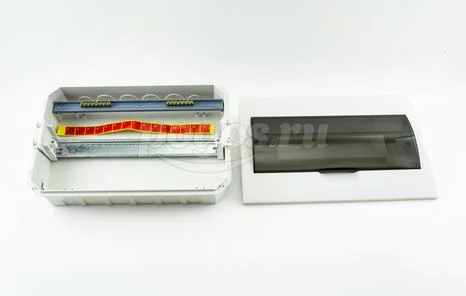 - Специальная съемная рейка с шинами N, PE позволяет переставлять шину как вверх, так и вниз бокса в зависимости от подвода кабеля.