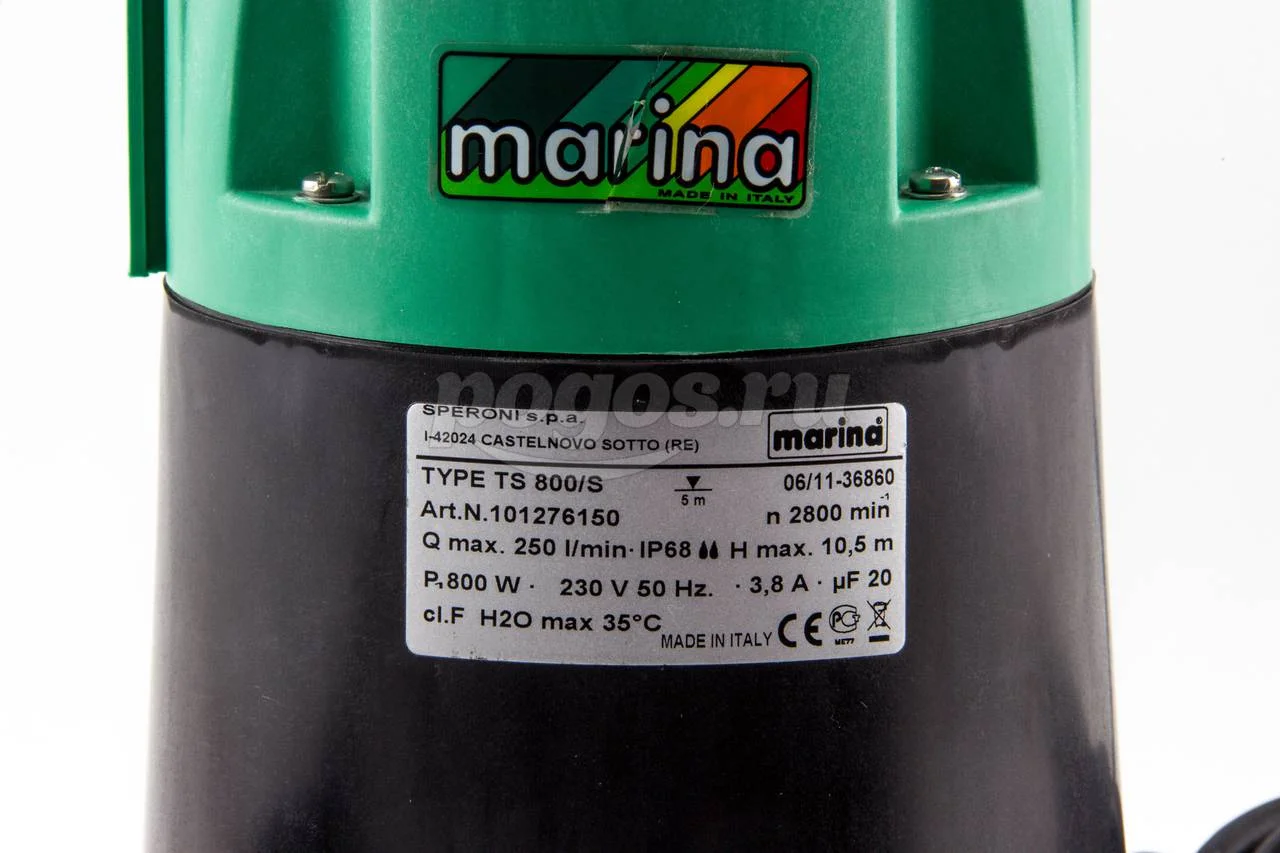 Насос погружной дренажный TS 800S, для чистой воды, поплавковый, 400Вт MARINA, артикул: