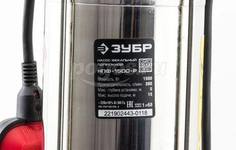 Насос фекальный погружной ЗУБР НПФ-1500-Р, предназначен для откачки сточных и бытовых вод на приусадебных и дачных хозяйствах.