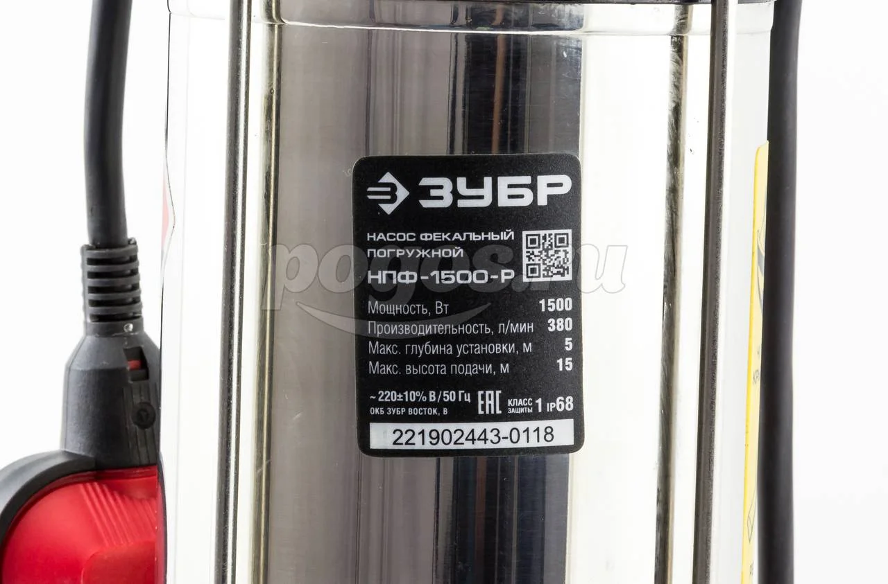 Насос фекальный ЗУБР 380/15, артикул: НПФ-1500-Р