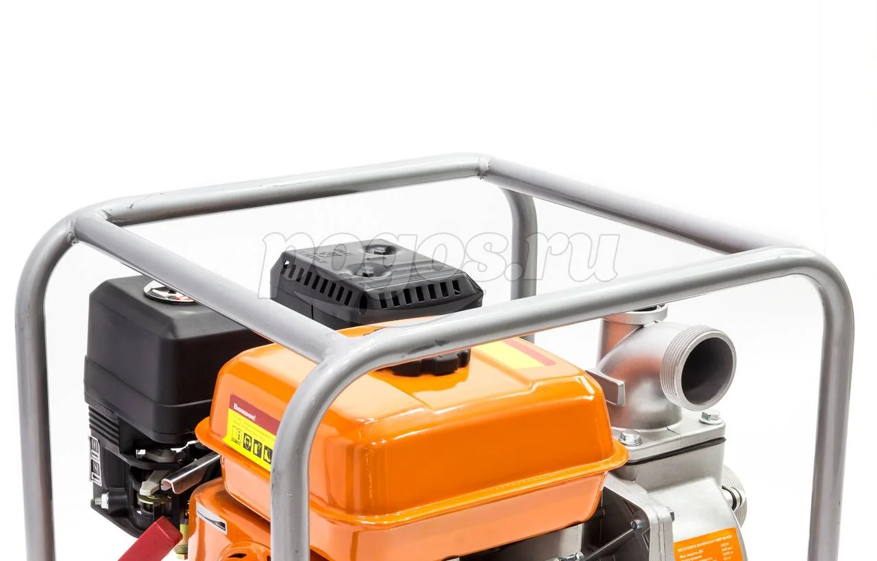 Мотопомпа смонтирована в металлической раме для защиты от повреждений и для удобства переноски. Установлен праймер для облегчения запуска.