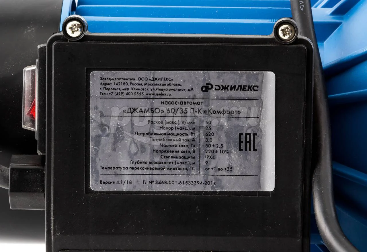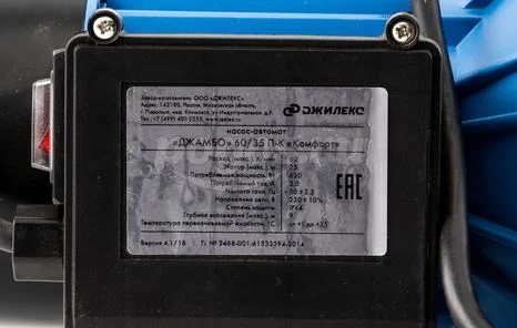 Технические характеристики Джилекс Джамбо 60/35 П-К "Комфорт" 4000: