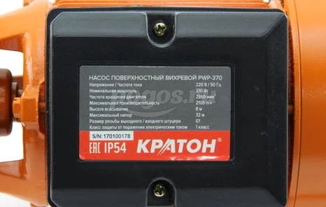 Насос поверхностный КРАТОН PWP-370 35/32, артикул: 5 04 06 004