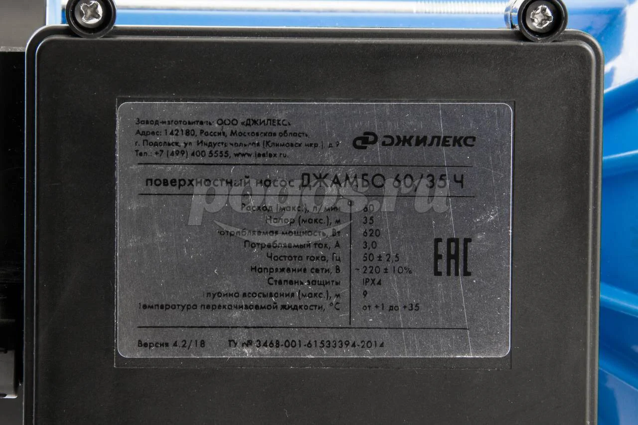 Поверхностный насос Джилекс Джамбо 60/35 Ч, артикул: 3000/3005