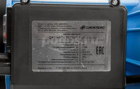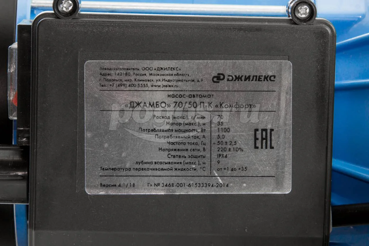 Насос-автомат 70л/мин 50м П-К Джамбо Комфорт ДЖИЛЕКС, артикул: 4001/3036