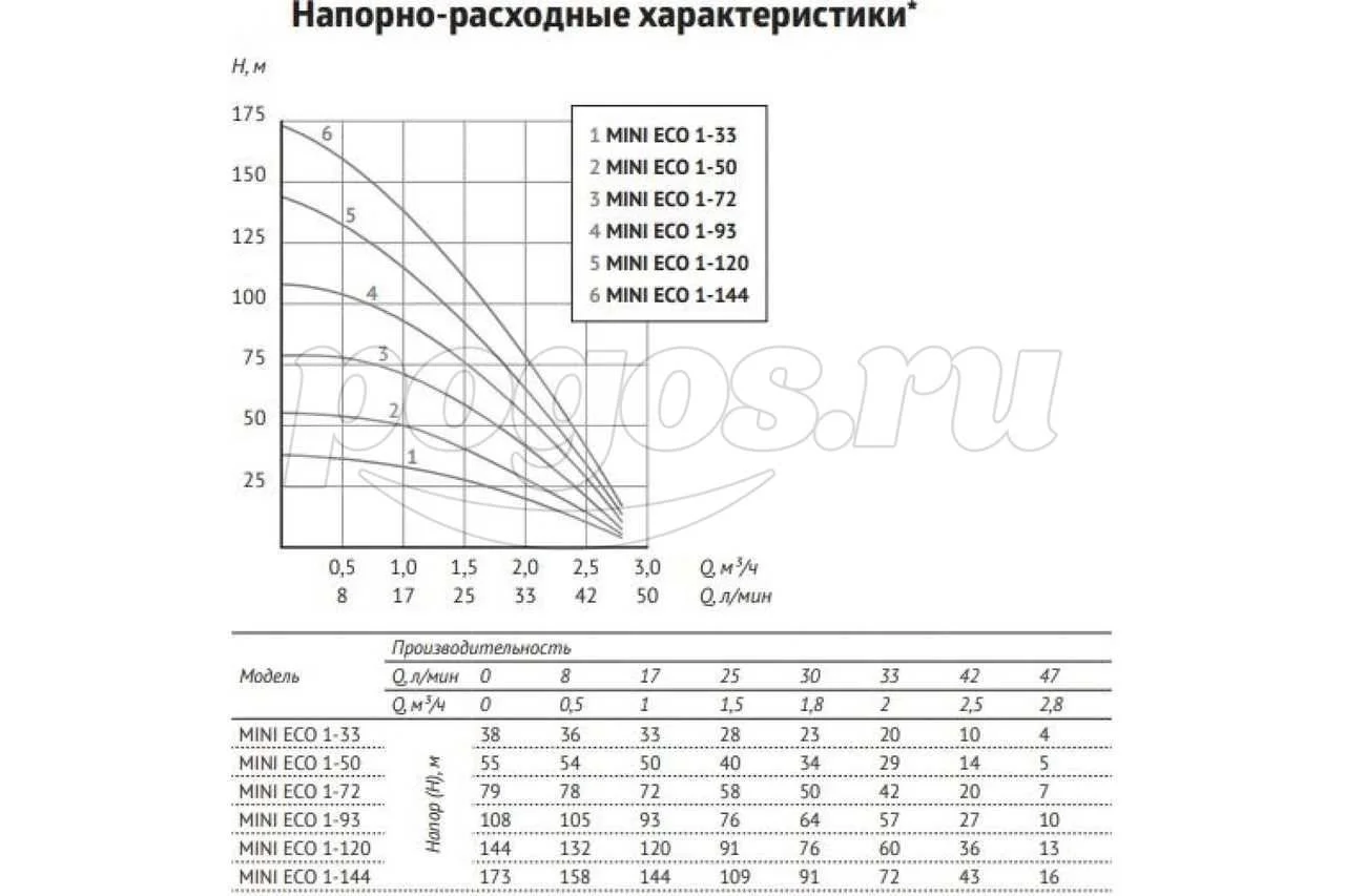 Погружной насос Unipump MINI ECO 1-144, 3", кабель 50м 41827, артикул: MINI ECO 1-144