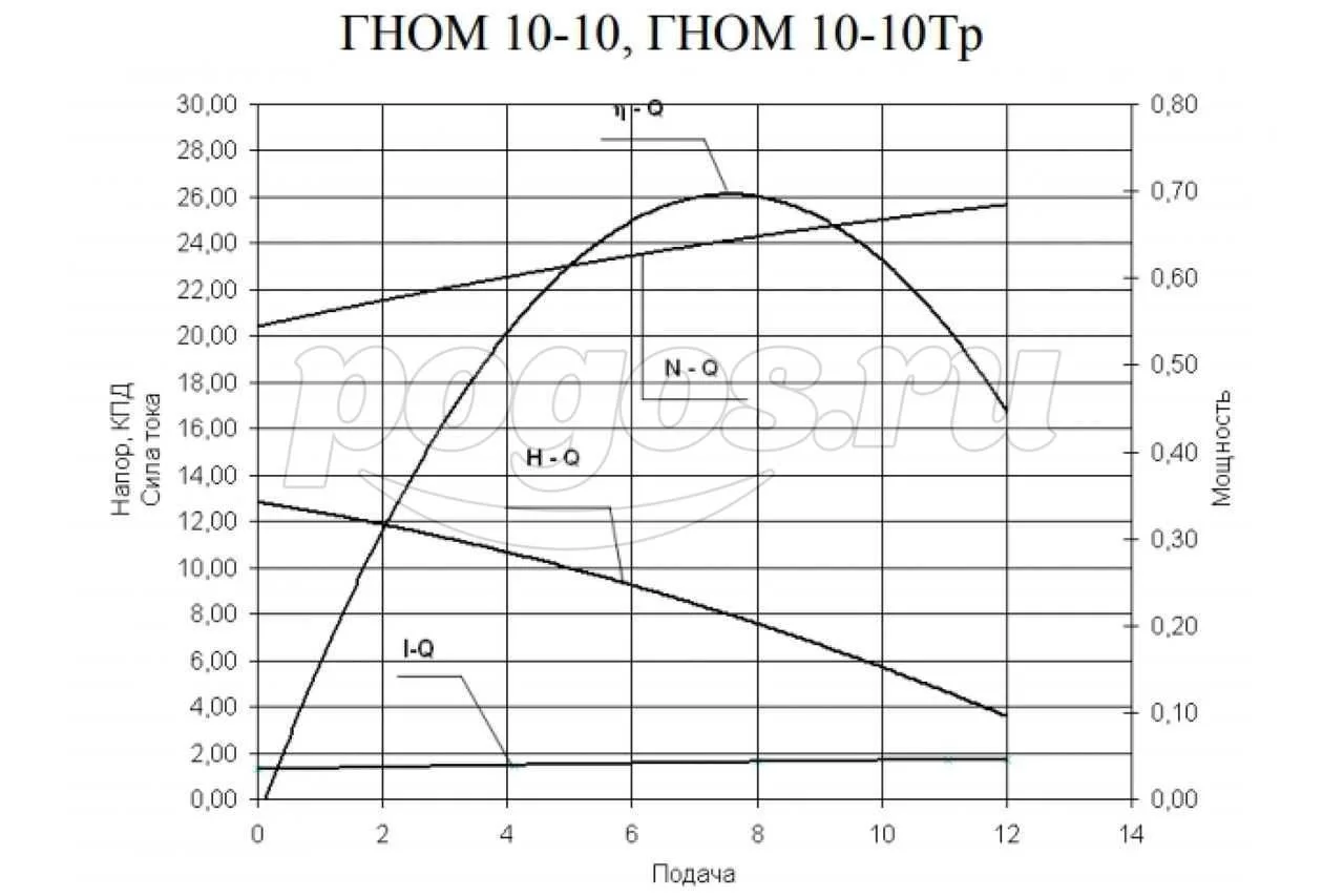 Насос Российский ГНОМ 10/10 Электромаш 380В 076-0420 предназначен для откачки чистых и загрязненных вод, содержащих примеси размером до 5 мм.