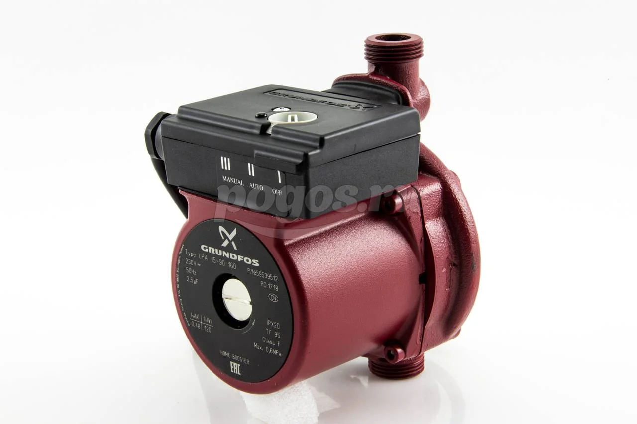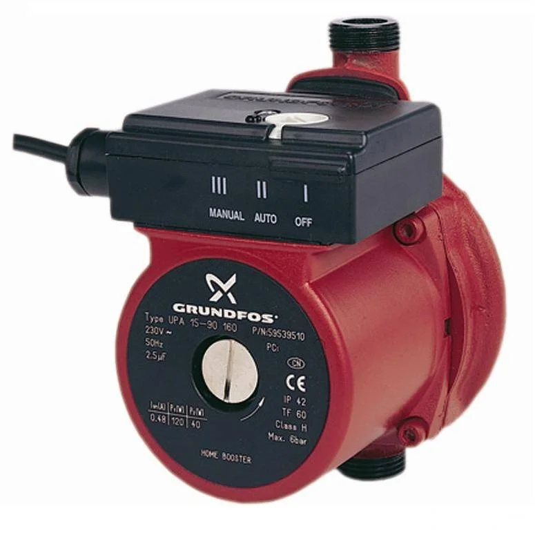Насос циркуляционный GRUNDFOS UPA 15-90 160 59539512 высота 9м 10бар. Компактные повысительные циркуляционные насосы UPA предназначены для повышения давления в уже существующих системах холодного и горячего водоснабжения частных домов. В первую очередь они используются для создания напора перед водонагревателями (газовыми колонками и проточными водонагревателями), стиральными и посудомоечными машинами. UPA могут также использоваться для повышения напора воды в душе или в других точках водоразбора. Применяются как для холодной, так и для горячей воды до температуры 95° C. Возможность повышения воды для нескольких точкек одновременно(1-4 крана), что делает его пригодным для квартир с общим водоснабжением и для домов на одну семью, а так же для: Городских районов с низким давлением воды в пиковые часы водоразбора. Квартир с общим водоразбором низкого давления. Сельской местности с низким давлением воды. Характеристики: Конструкция циркуляционный. Центробежный +. Назначение по воде чистая