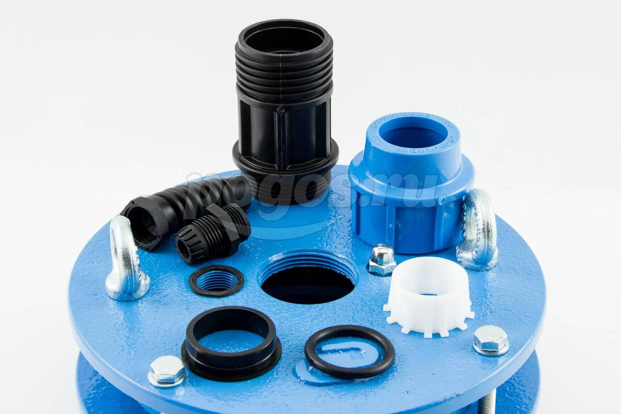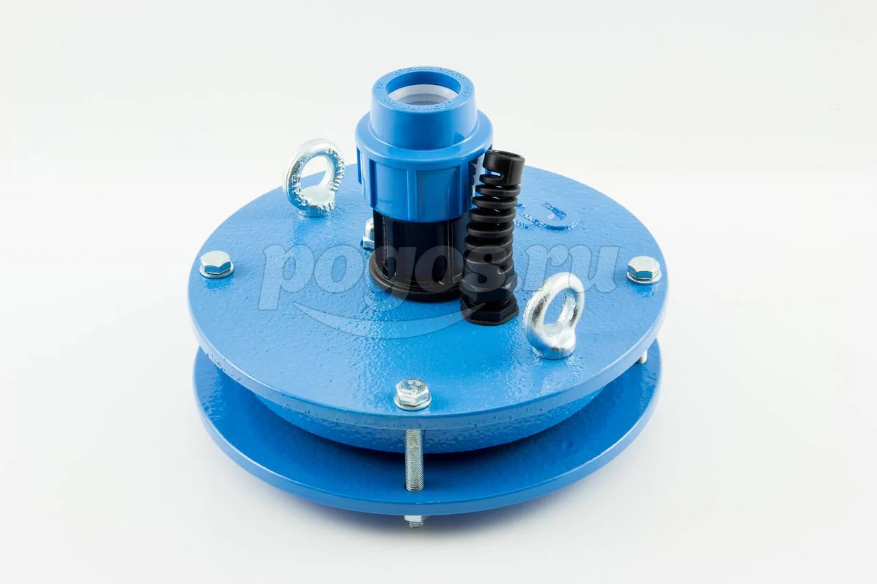 Оголовок скважины предназначен для герметизации устья скважины с наружным диаметром обсадной трубы 107 - 152 мм с установленным внутри нее насосом, полиэтиленовой напорной трубой диаметром 32 и 40 мм, а также кабелями круглого сечения в оболочке (силовым для питания электродвигателя насоса oт 4х0.75 мм2 до 4х4 мм2 и, при необходимости, слаботочного кабеля от 3х0-75 мм2 до 3х1.5 мм2 для подключения источников "сухого хода".