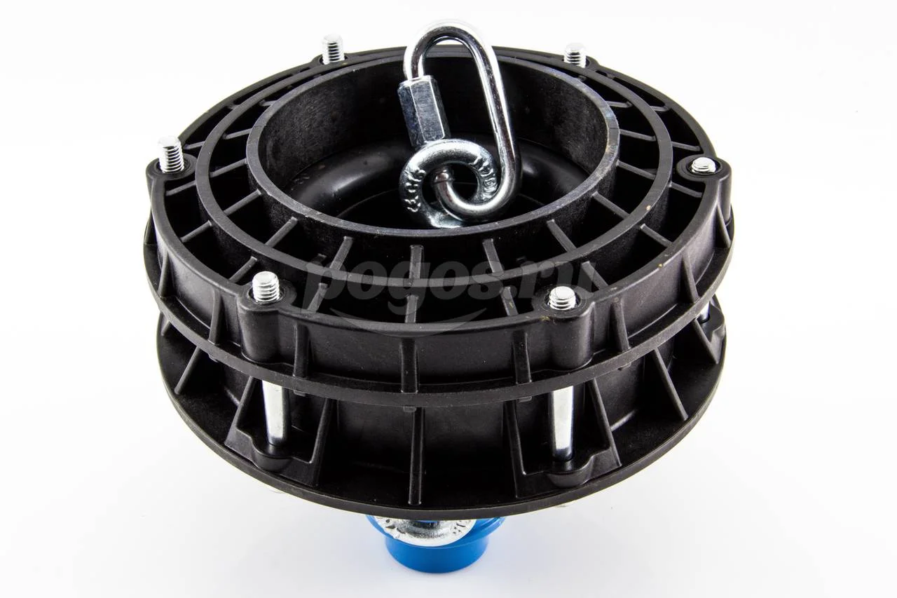 Сверху на нем располагаются стальные рым-болты для прикрепления подъемных устройств, используемых при опускании насоса в скважину. На нижней поверхности оголовка имеется карабин для закрепления троса.
