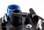 Приспособление выполнено из пластика и представляет собой крышку с прижимным фланцем и кольцом из резины.