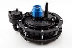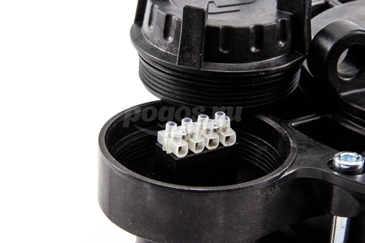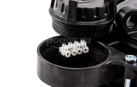 На нижней поверхности оголовка имеется карабин для закрепления троса. Оголовок имеет базовую часть, фиксированную на корпусе крышки, что позволяет производить простое и неоднократное соединение/разъединение электрокабеля в клеммной коробке при извлечении насоса из скважины.