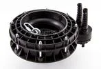 Приспособление выполнено из пластика и представляет собой крышку с прижимным фланцем и кольцом из резины.