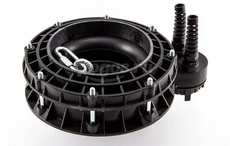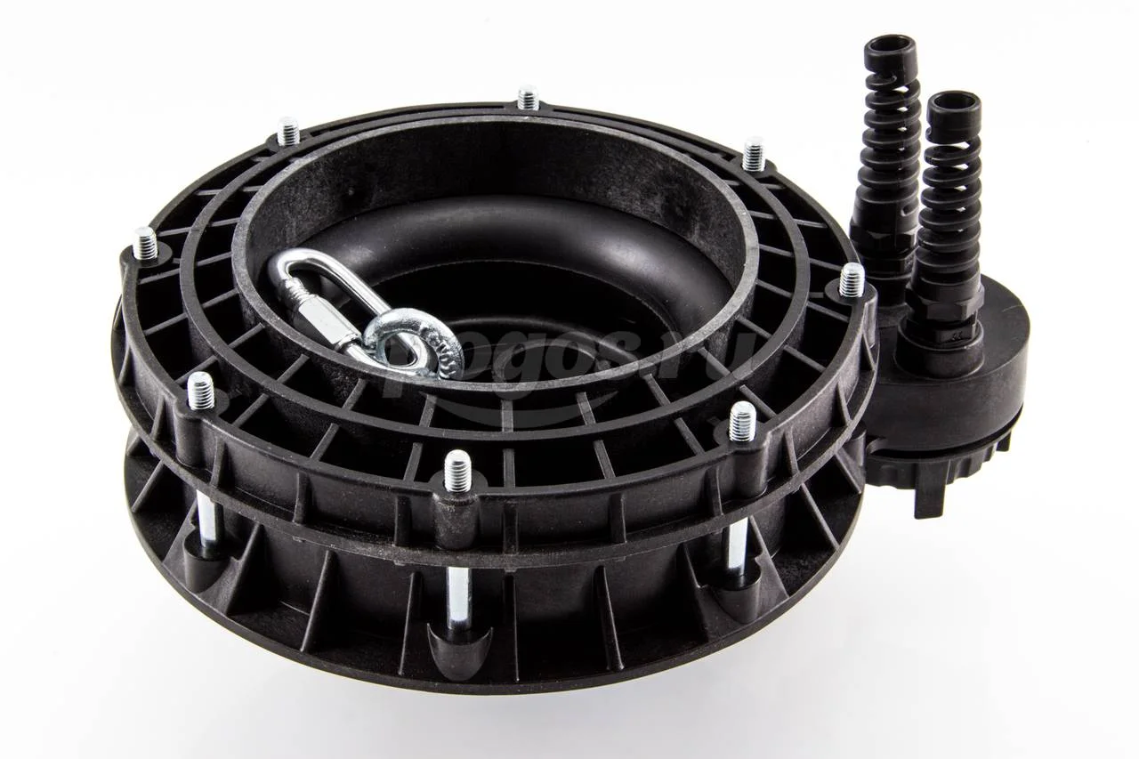 Изделие легко устанавливается без применения сварочного аппарата за счет стягивания уплотнительного кольца с помощью болтов на крышке.