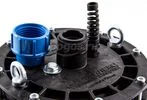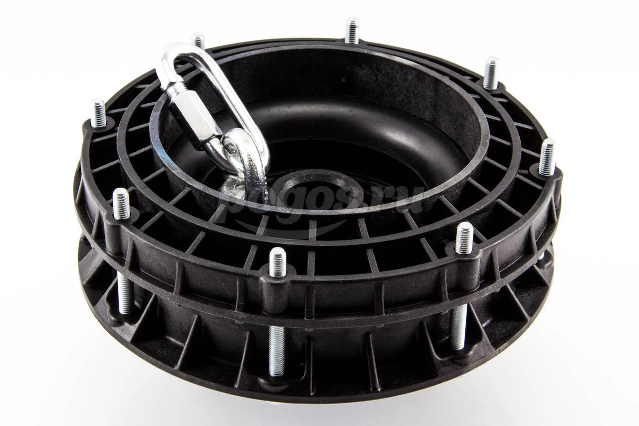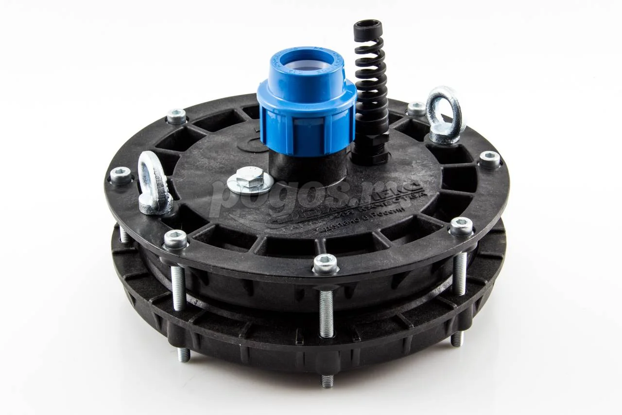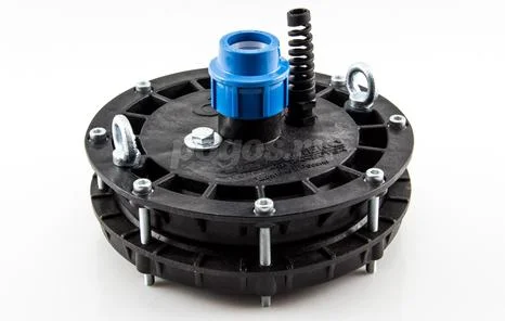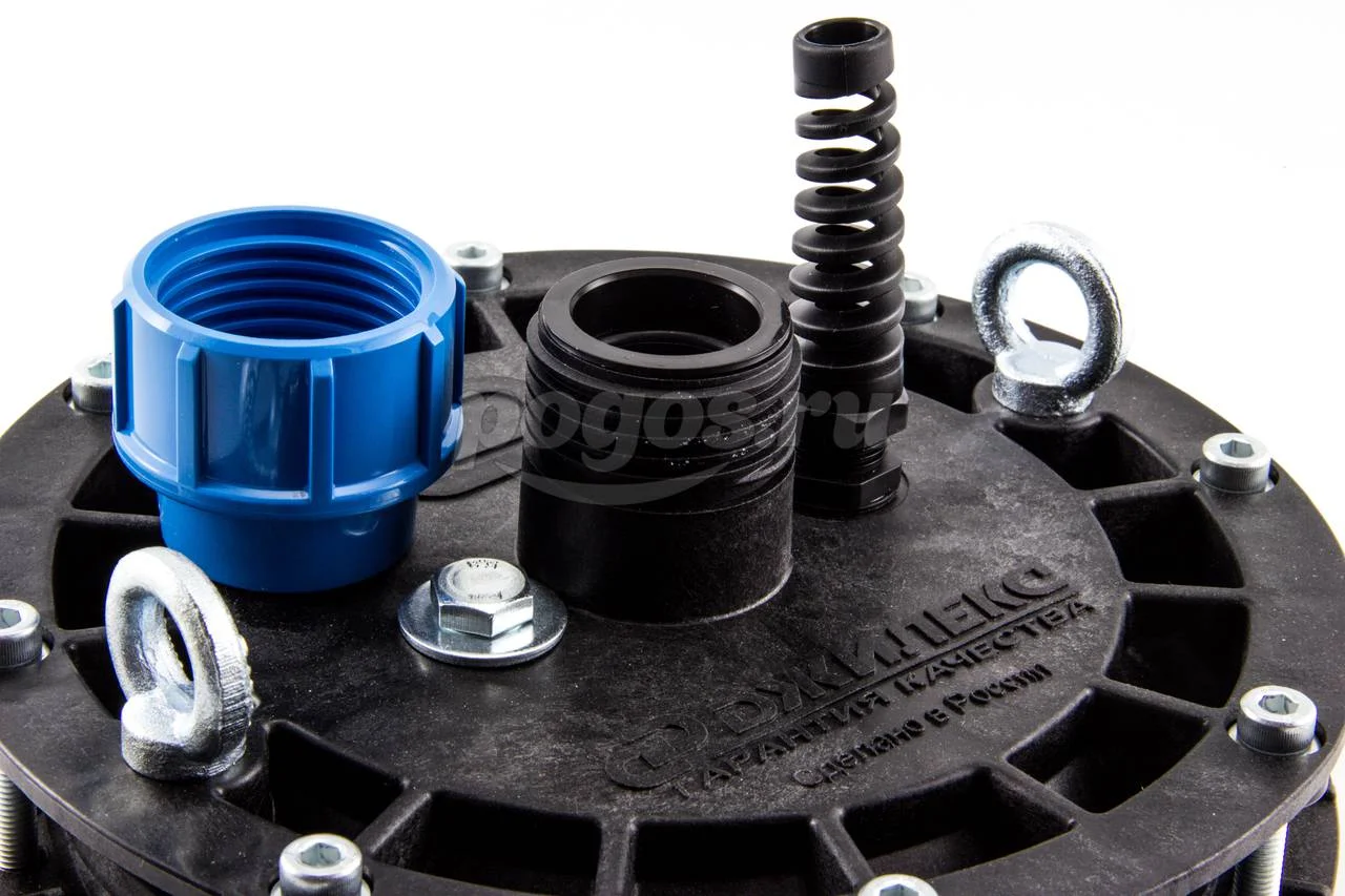 Оголовок защищает скважину от проникновения внутрь грунтовых вод. Приспособление выполнено из прочного пластика и представляет собой крышку с прижимным фланцем и кольцом из резины.