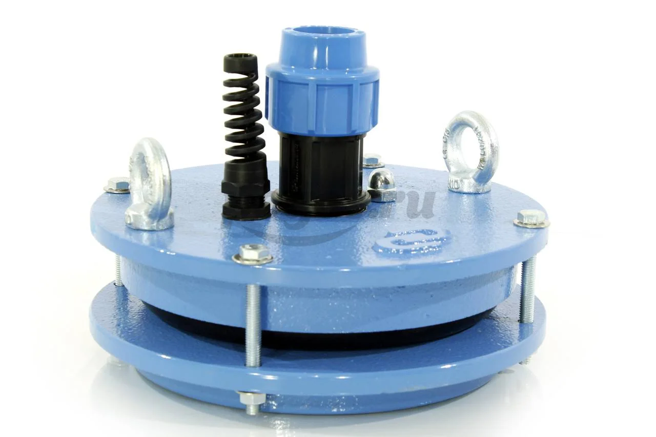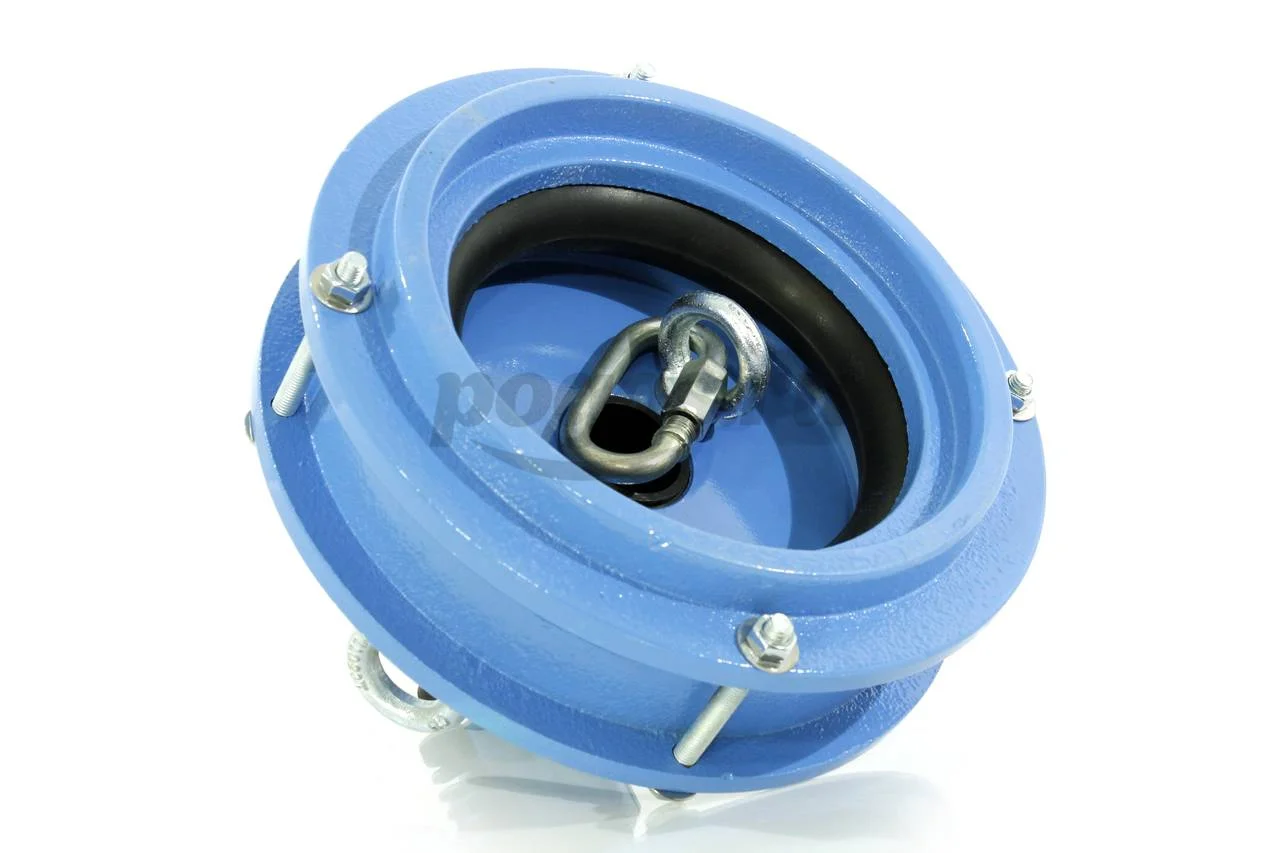 Изделие легко устанавливается без применения сварочного аппарата за счет стягивания уплотнительного кольца с помощью болтов на крышке.