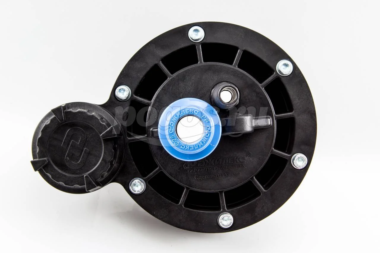 Изделие легко устанавливается без применения сварочного аппарата за счет стягивания уплотнительного кольца с помощью болтов на крышке.