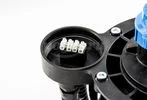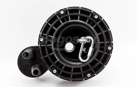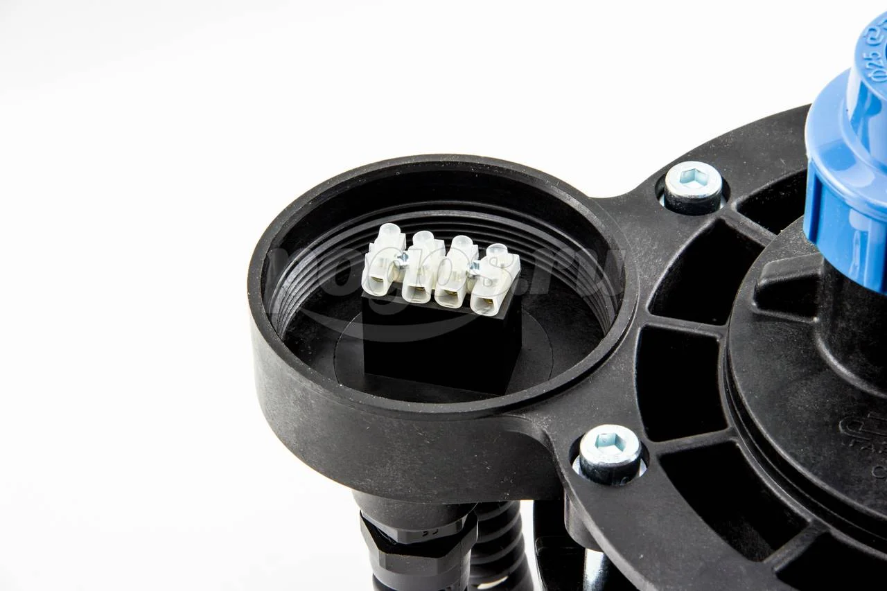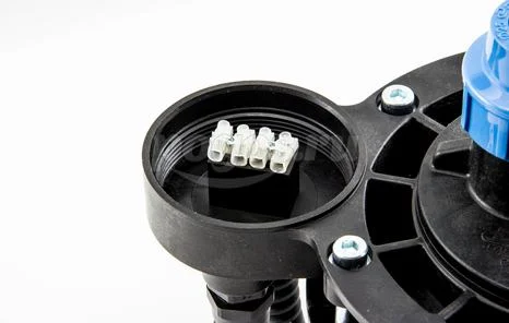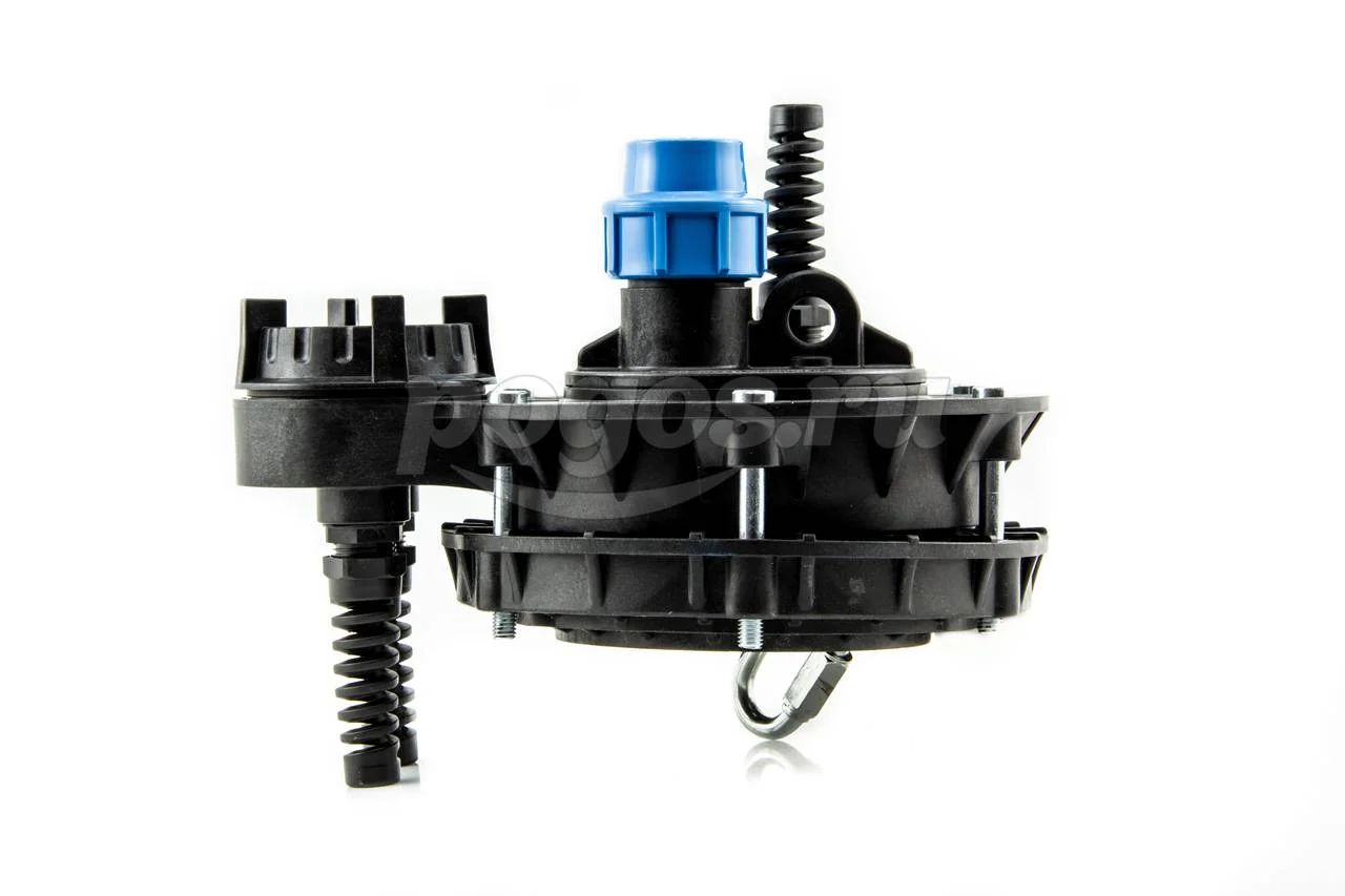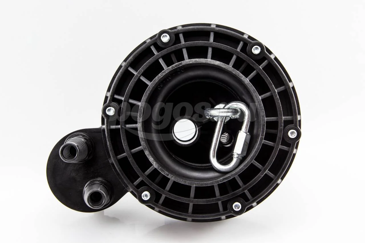 На нижней поверхности оголовка имеется карабин для закрепления троса. Оголовок имеет базовую часть, фиксированную на корпусе крышки, что позволяет производить простое и неоднократное соединение/разъединение электрокабеля в клеммной коробке при извлечении насоса из скважины.