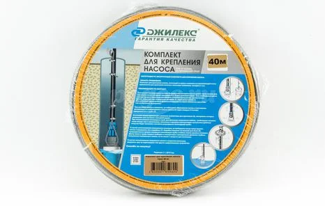 Оснащен четырьмя зажимами для надежного крепления насоса в скважине или колодце. Длина - 40 м.