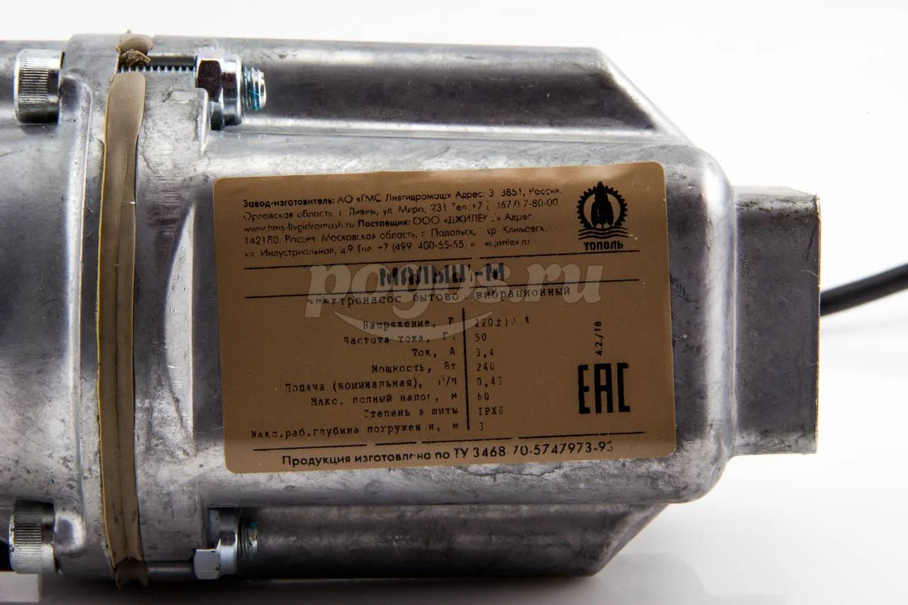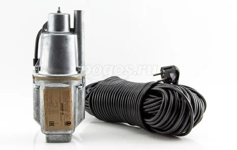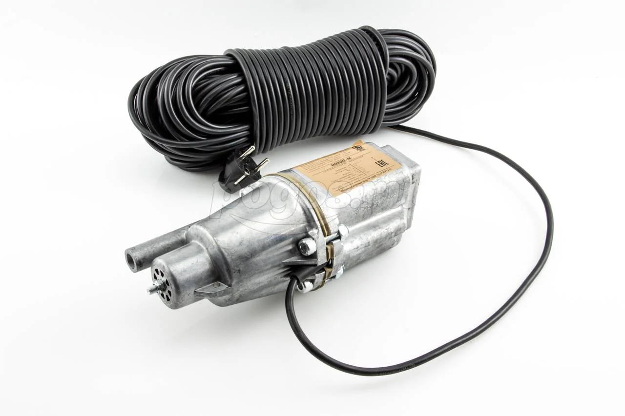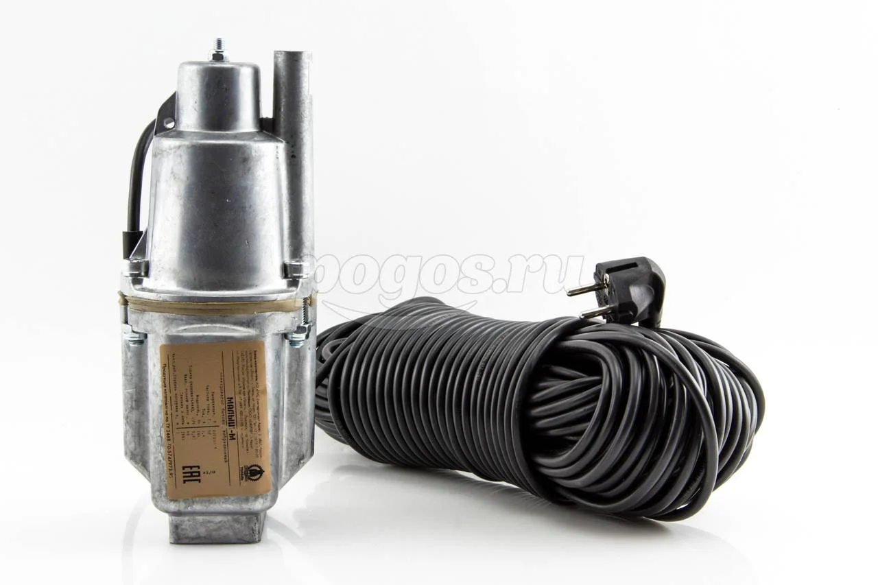 Вибрационный насос Тополь Малыш-М 1514 с производительностью 1500 л/час поднимает воду с глубины до 3 метров. Он полностью погружается в колодец с помощью капронового троса.
