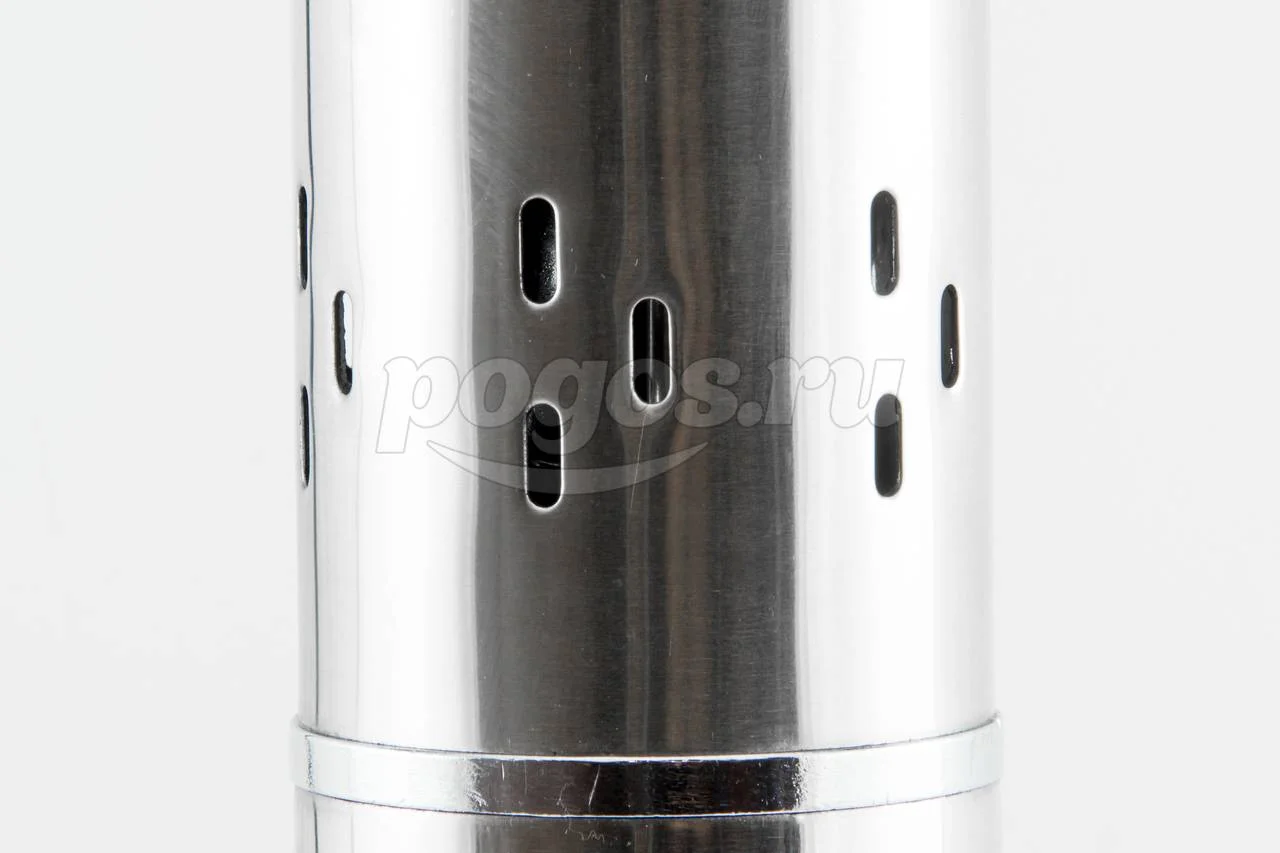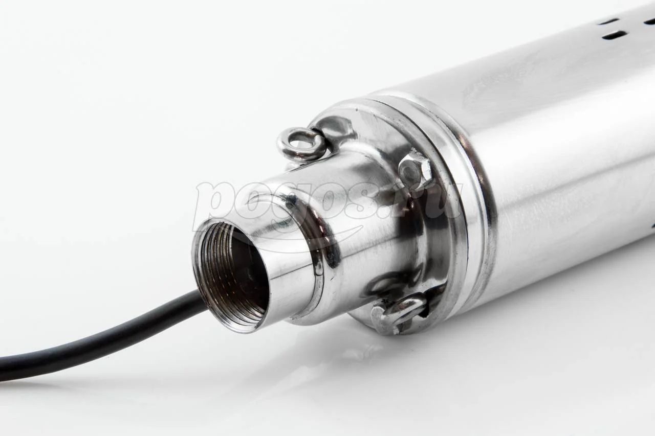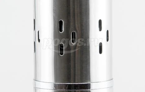 Винтового типа с верхним водозабором. Долговечный корпус из нержавеющей стали не подвержен коррозии и надёжно защищает механизм от повреждений. Насосная часть - из хромированной стали.