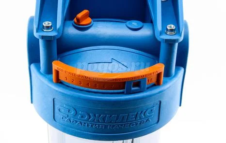 На крышке корпуса предусмотрены: календарь (для удобного отслеживания даты последней замены фильтр.элемента пользователем) и пробка (для снятия чрезмерного давления при осуществлении замены фильтр. элемента).