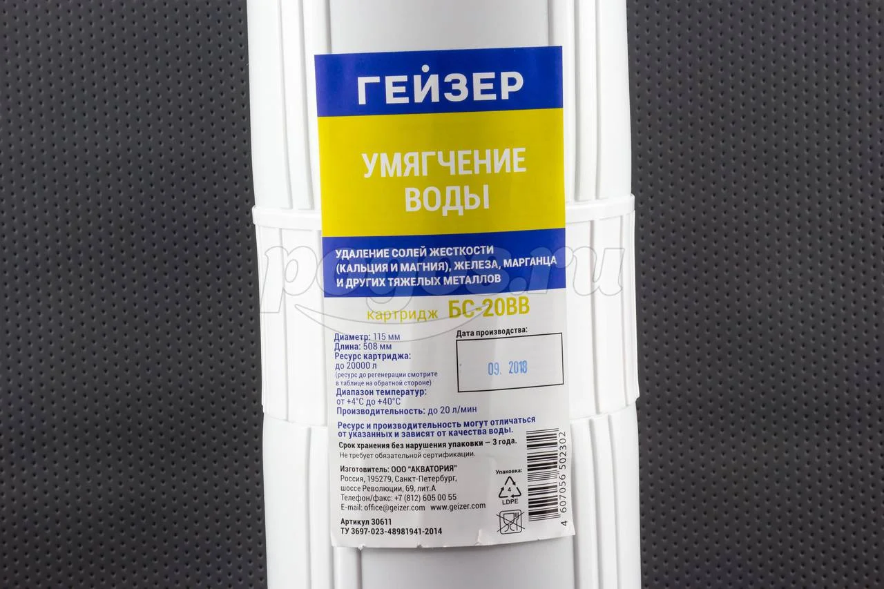 Картридж БС - 20BВ предназначен для удаления из воды избыточных солей жесткости на ионообменной смоле пищевого класса.