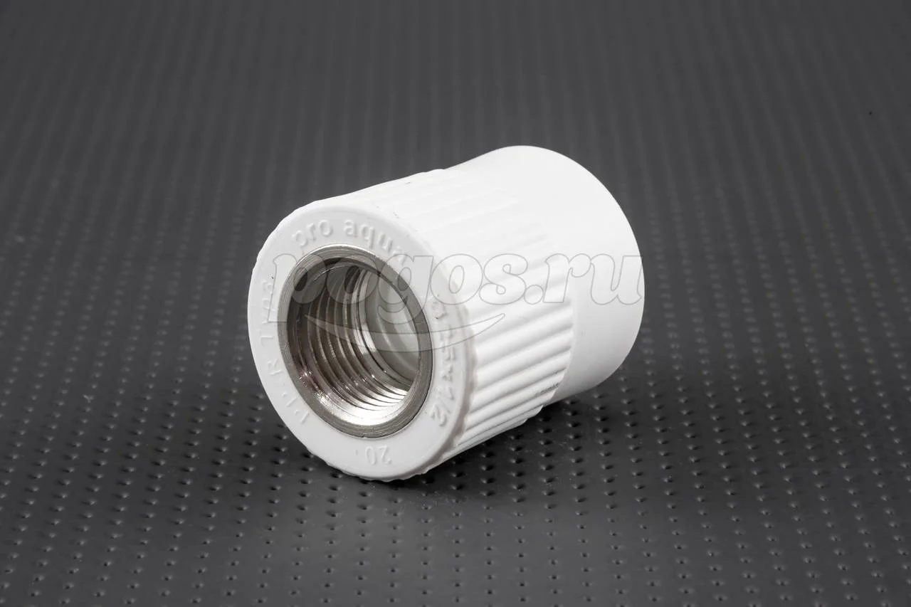 Полипропиленовая комбинированная муфта Pro Aqua с внутренней резьбой это соединительный элемент трубопроводов, содержащий детали из полипропилена и металла.