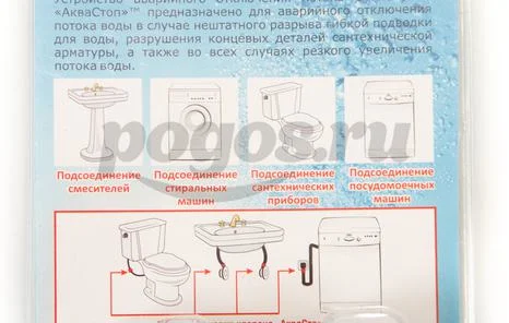 Система защиты от протечек воды АкваСтоп используется для подсоединения смесителей, стиральных и посудомоечных машин, сантехнических приборов.