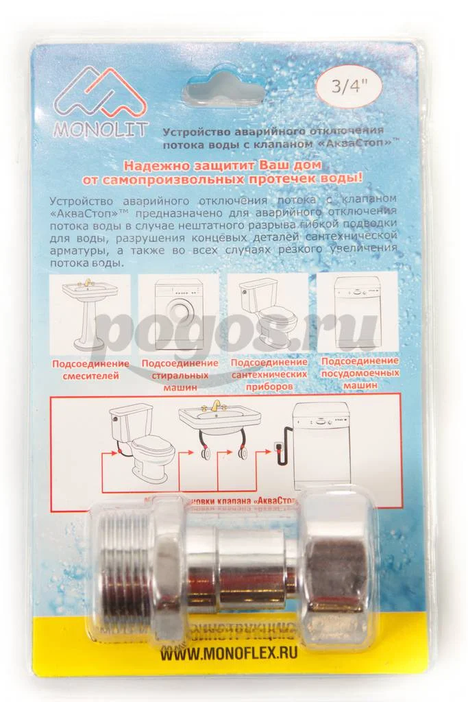 Клапан от протечек, 3/4" АкваСтоп МОНОЛИТ