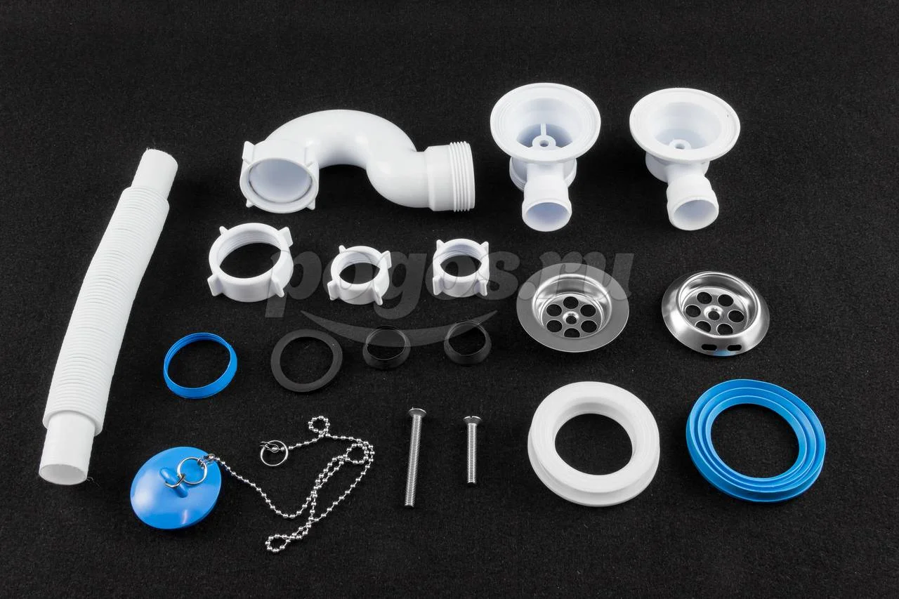Сифон для ванны подходит для большинства типов чугунных, стальных и акриловых ванн со стандартными размерами между отверстиями слива и перелива.