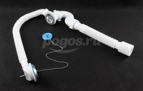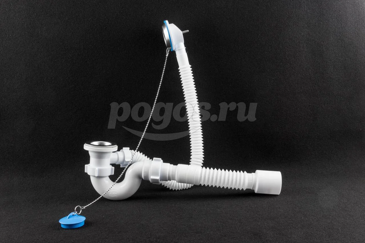 Сифон для ванны с выпуском и переливом 1 1/2 с гибкой трубой 40x50 Анипласт