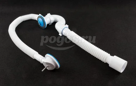 Гибкий патрубок позволяет устанавливать обвязку под ванны с чашей различной формы. Длина переливного патрубка за счёт гофры может меняться от 280 до 580 мм. Длина выпуска меняется от 220 до 375 мм