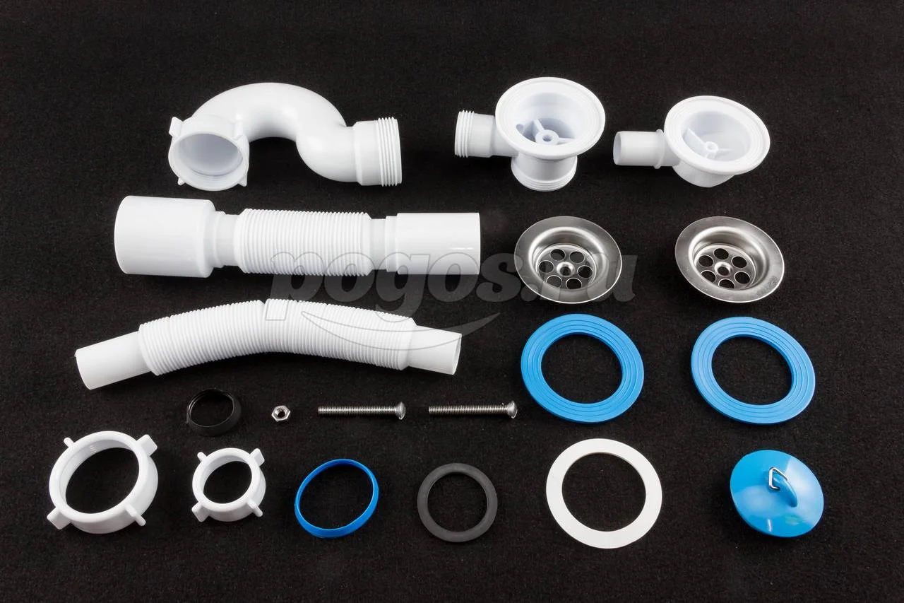 Сантехнический сифон изготовлен из пластика, поэтому все патрубки при необходимости легко подрезаются для подгонки по месту установки.