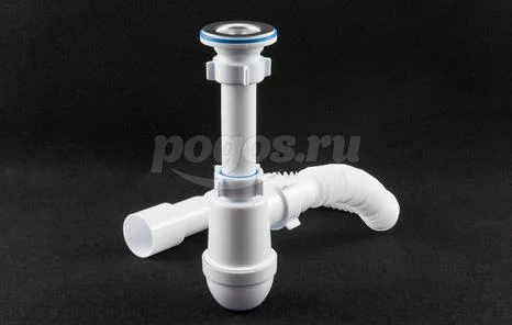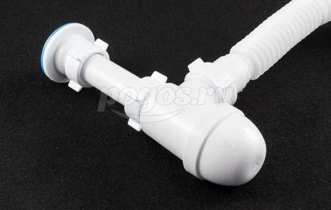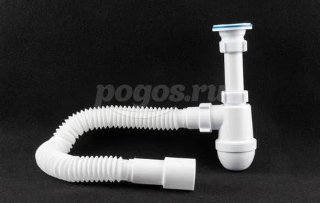 Пластмассовый сифон для умывальника предназначен для слива воды в канализацию.