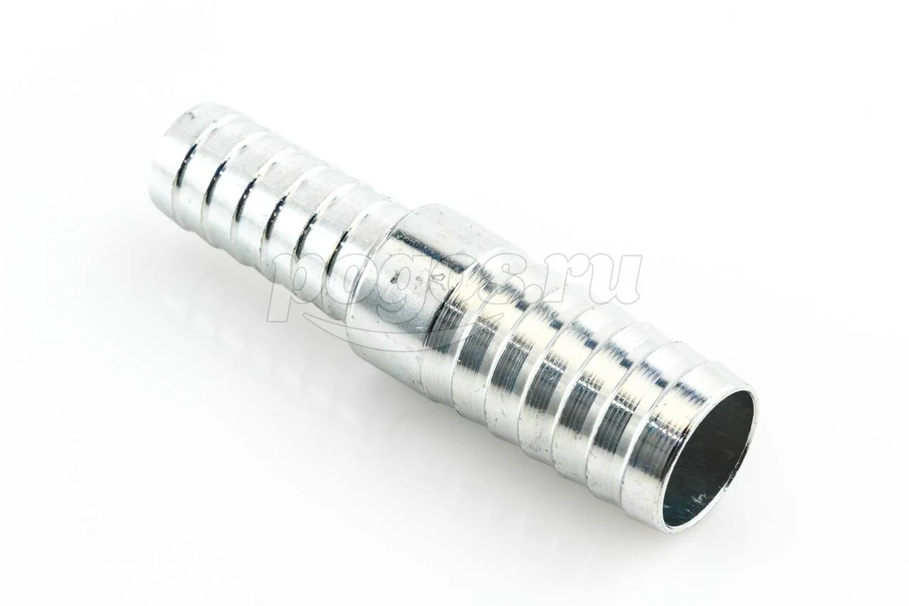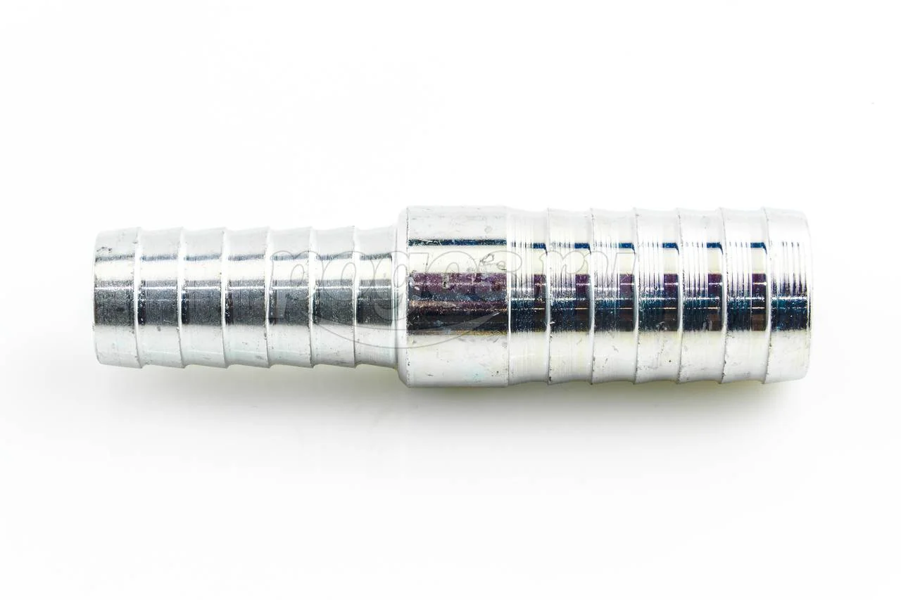 Представляет из себя штуцер с разными диаметрами из оцинкованной стали с зубчатой насечкой на обоих концах.