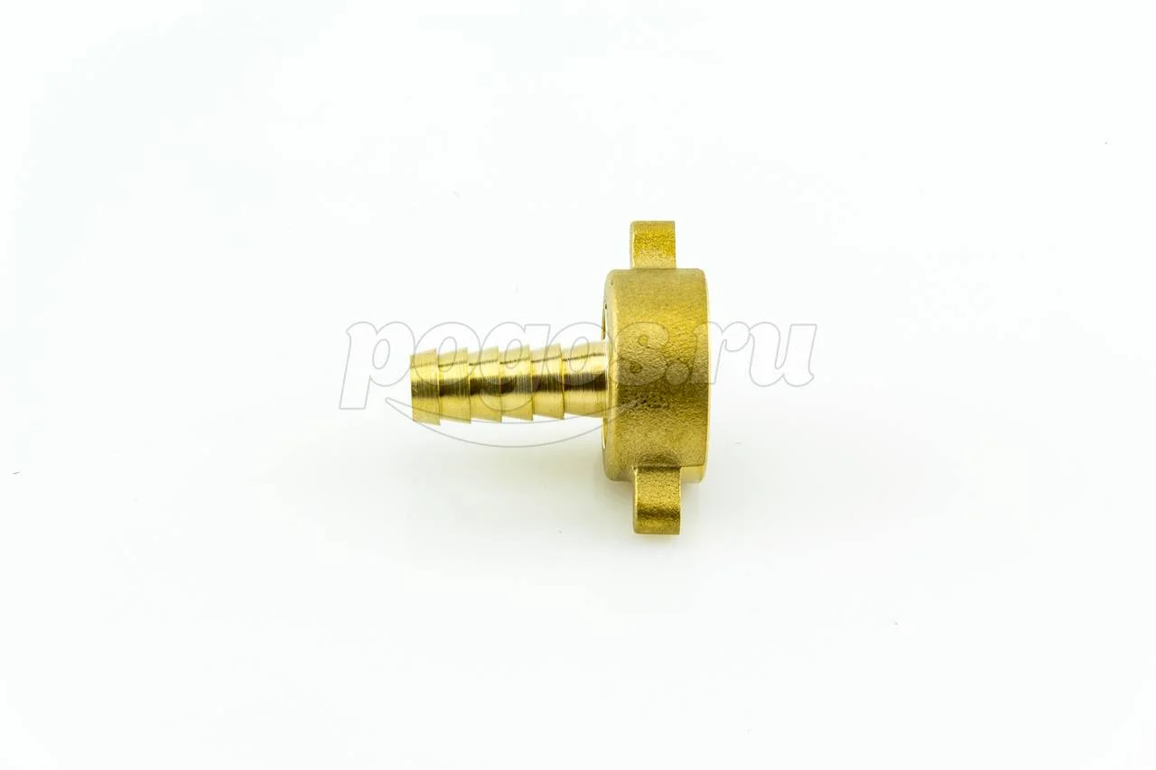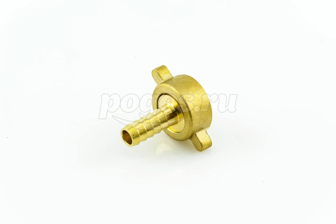 С одной стороны имеет трубную внутреннюю резьбу 1/2" , с другой стороны штуцера елочка Ду-9 мм для присоединения к шлангу (всех видов).