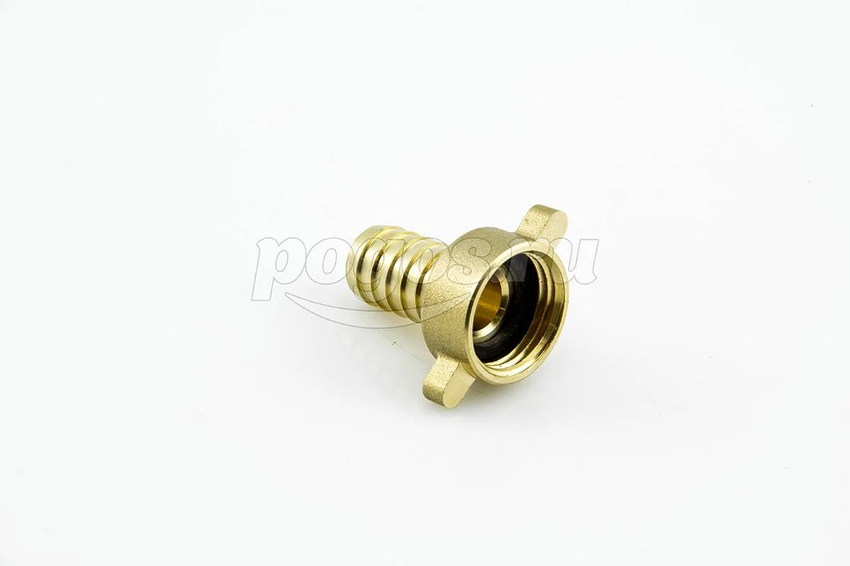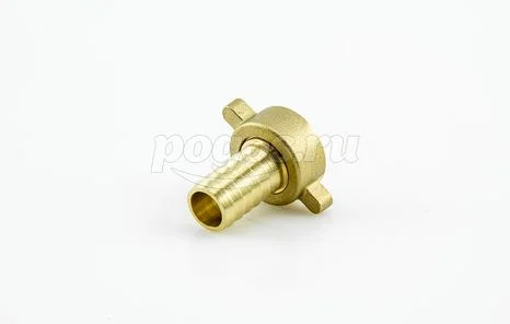 С одной стороны имеет трубную внутреннюю резьбу 1/2" , с другой стороны штуцера елочка Ду-12 мм для присоединения к шлангу (всех видов).