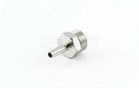 С одной стороны имеет трубную наружнюю резьбу 1/2" , с другой стороны штуцера елочка Ду-7 мм для присоединения к шлангу (всех видов).