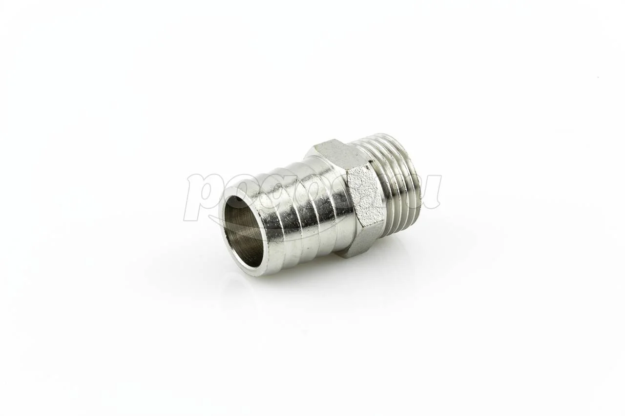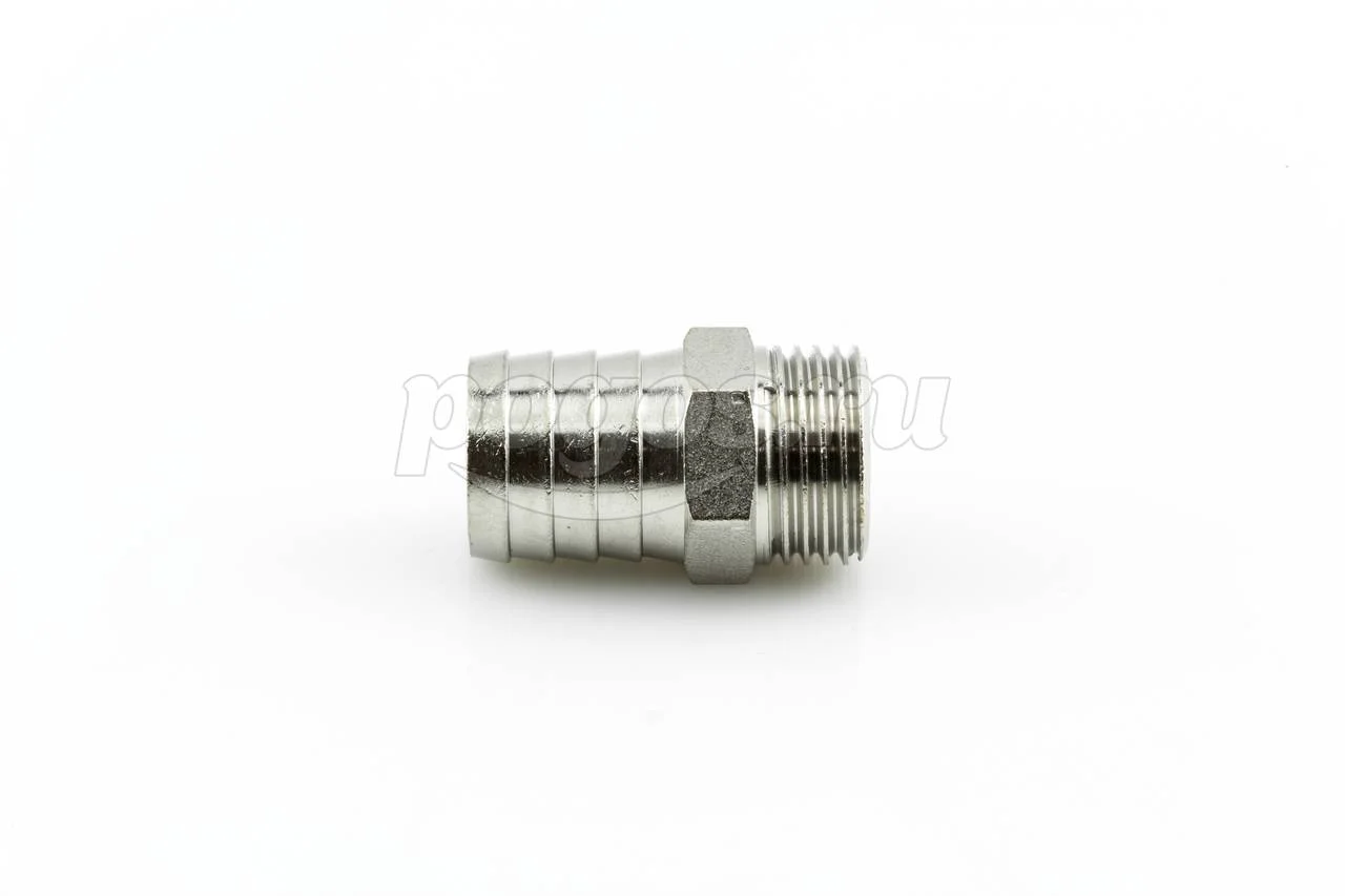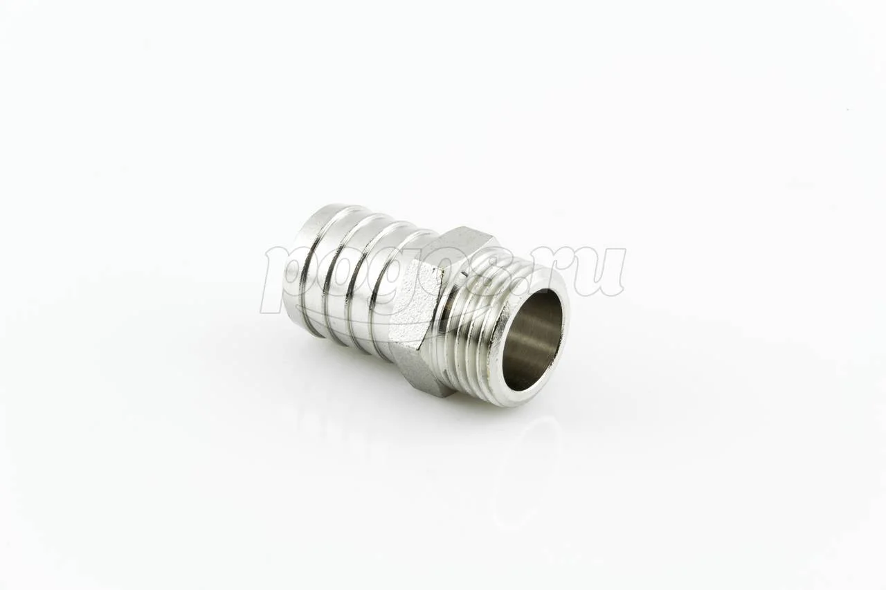 С одной стороны имеет трубную наружнюю резьбу 1/2" , с другой стороны штуцера елочка Ду-20 мм для присоединения к шлангу (всех видов).